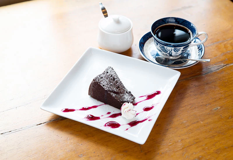 カフェタイムには、看板メニューの「バスクチーズケーキ」とコーヒーの組み合わせをぜひお試しください。香り高い一杯とともに、至福のひとときをどうぞ。