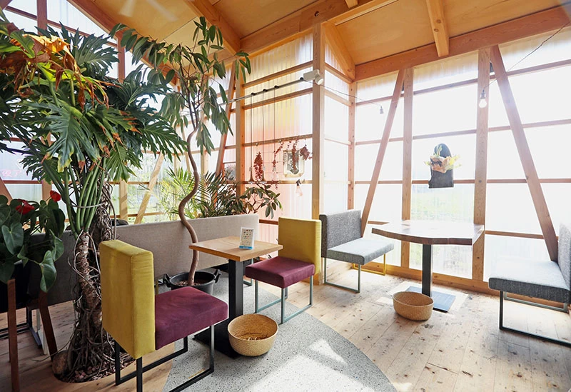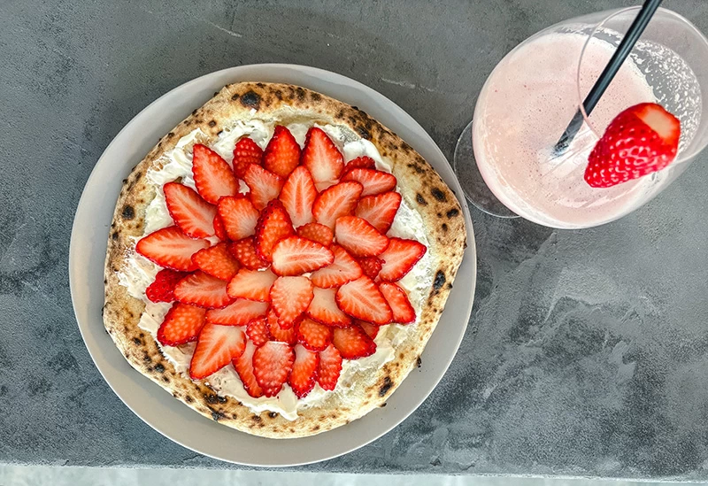 人気メニューは、地元産のフルーツをたっぷり使ったデザートピザ。契約農家から直接仕入れた旬の果物がふんだんに使われており、その彩りとみずみずしさが魅力です。カラフルなフルーツで彩られたピザやドリンクは、グルメを楽しみたい女子会にもぴったり。季節ごとに変わる限定メニューでは、その時期ならではのフルーツの美味しさを存分に味わえます。