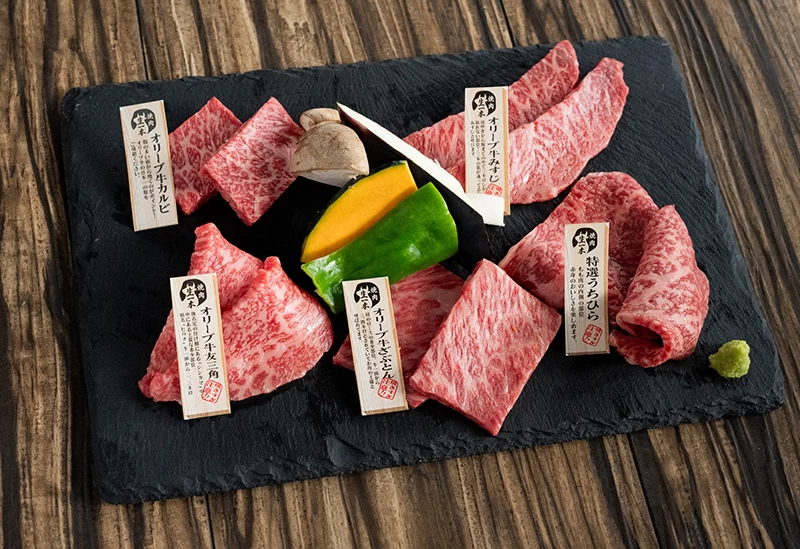 「無煙炭火焼・焼肉 生一本(きいっぽん)」は、香川県産A5ランクのオリーブ牛を堪能できる、讃岐オリーブ牛協会加盟の焼肉店です。提供される肉は鮮度抜群で、そのままでも食べられるほどの質の高さが魅力。おすすめは、友三角(ともさんかく)、ざぶとん、みすじなどの希少部位を盛り込んだ「生一本オリーブ牛セット」です。選りすぐりの贅沢な食材を、肉の余分な脂を落としてくれる専用の無煙ロースターでいただきましょう。最大40名までの団体利用も可能です。