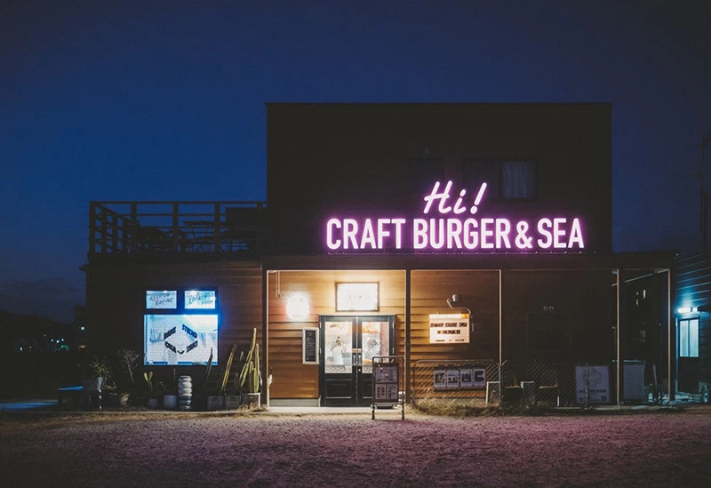 オーナーの趣味であるスケートボードが飾られた店内は、アメリカ西海岸を彷彿とさせる雰囲気。香川県の観光名所「父母ヶ浜」がすぐ隣という絶好のロケーションも魅力です。