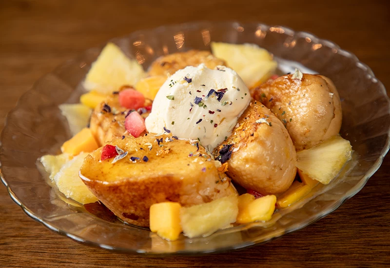 創業130余年を誇る老舗果物屋さんが展開する「はまきた珈琲」では、毎朝社長自らが市場で仕入れた鮮度抜群の果物を使ったメニューを提供しています。自家配合した生地で焼き上げるパンケーキやフレンチトースト、ワッフル、クレープ、さらにはパフェに季節のフルーツが盛りだくさん使用されます。