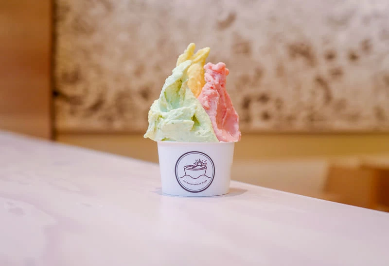 隣接するハンバーガー専門店「BAKE STUDIO OKAZAKI」で販売していたドーナツが人気を集め、2021年にドーナツ専門店をオープン。翌日でもしっとり&やわらかな生地が特徴で、SNS映えするカラフルな見た目も愛らしいドーナツです。各所にフォトスポットも設置されているので、写真撮影にぴったり。ほかにも、イベント限定の変わり種ドーナツもおすすめです。チョコやキャラメルなど約30種類ある定番のほか、シーズンで変わる限定商品として夏はマンゴー、冬は白みそ&あずきといった、季節の食材を活かした変わり種も。