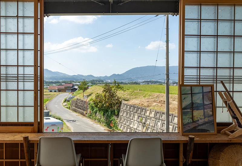 のんびり食事を楽しみ本村港を望める「直島カフェコンニチハ」。海街ならではの「コンニチハカレー(シーフード)」、ロングセラーの「クリームチーズリゾット(風)」など家庭的なメニューを提供しています。岡山県玉野市では、系列の宿泊施設も展開中です。