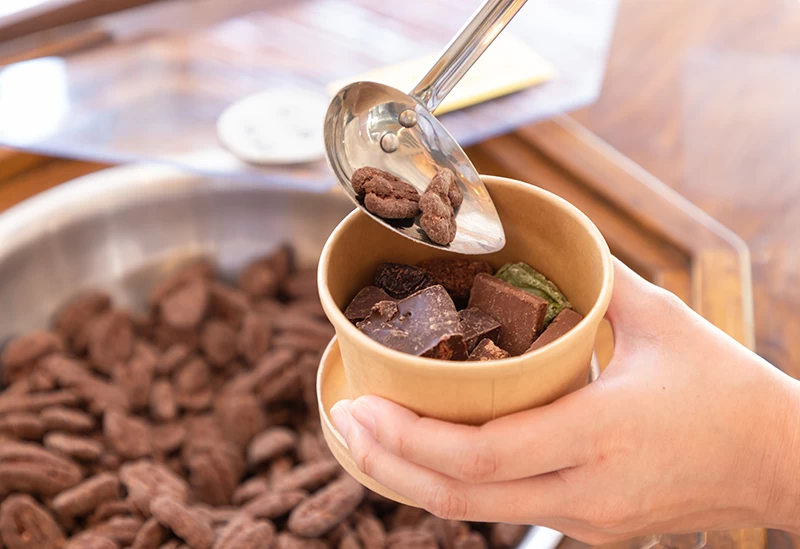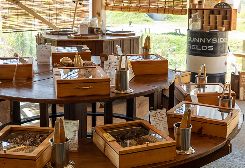 香川県・まんのう町の自然に囲まれた「SUNNYSIDE FIELDS」は、食の魅力を存分に味わえる複合施設です。施設内では、地元で採れた新鮮な野菜を使ったランチをはじめ、生産者から直接仕入れたカカオ豆で作るクラフトチョコレートや、自家焙煎のコーヒーを提供。素材の背景やおいしさに丁寧に向き合ったメニューが揃い、食を通じて土地の恵みを実感できます。カフェ利用はもちろん、スイーツ好きにも立ち寄ってほしい一軒です。
