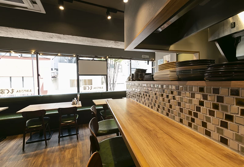 タイル張りのお洒落なカウンター席のほか、テーブル席を備えた落ち着きのある空間で、国産の食材を使用し、手作りにこだわった種類豊富な料理とお酒が味わえる。