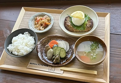 兵庫県加古川市西神吉町にある「RURAL KITCHEN」は、雄大な山々や麦畑の景色を楽しみながら食事ができるお店です。特製ハンバーグやピラフなどの洋食から、180日以上熟成発酵させたぬか床で仕上げる季節の野菜を使った自家製ぬか漬けが付く定食まで、多彩なメニューを提供しています。ぬか漬けは国産食材を使い、深い味わいが自慢です。