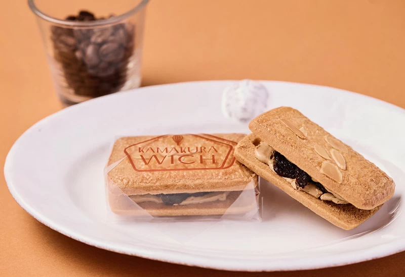 鎌倉ウィッチは鎌倉駅西口から徒歩すぐ、御成通りの中ほどにある人気の洋菓子店です。なかでも古都鎌倉を訪れる観光客のお土産としても人気の「鎌倉ウィッチ」は、厳選した素材を使い、熟練のスタッフが丁寧に仕上げたこだわりの一品になっています。鎌倉本店にはカフェスペースがあり、出来たての「鎌倉ウィッチ」のほかにも、焼き菓子やケーキ、ゼリー、チョコ菓子などを楽しむことができます。また、「ハンドメイドレーズン ウィッチセット」など鎌倉本店限定メニューも充実しています。