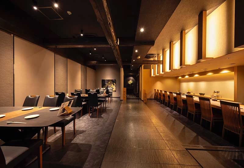 広いカウンターと個室でゆったり過ごせる寿司店