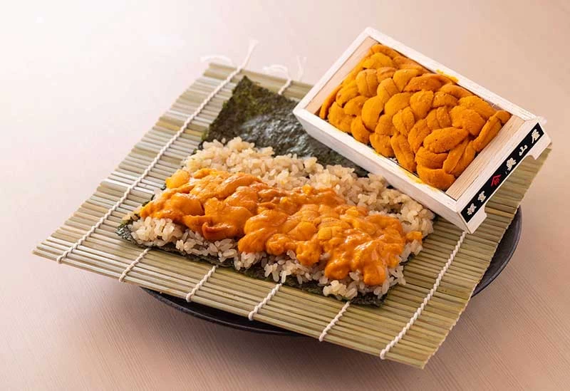 石川県金沢市片町に佇む「能登前寿司と原始焼き 鮨 湊崎」は、能登近海の新鮮な魚介を使った“能登前寿司”と“原始焼き”が楽しめる一軒。赤酢の香り豊かなシャリで握る寿司は、素材の旨味を際立たせる繊細な味わいが魅力だ。店内中央の囲炉裏で焼き上げる原始焼きは、魚介や肉の旨味を凝縮した力強い一品。名物「雲丹素麺」や創作寿司「特大花盛り」も揃い、洗練された和空間で日本酒との至福のマリアージュが堪能できる。