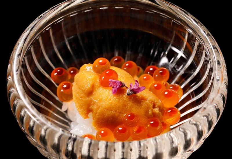 兼六園やひがし茶屋街など金沢観光を満喫したあとは、「能登前寿司と原始焼き 鮨 湊崎」で能登の海の幸を堪能したい。能登近海で水揚げされた旬魚を使う“能登前寿司”は、赤酢のシャリがネタの旨味を引き立てる職人技の一貫。店内中央の囲炉裏で焼き上げる原始焼きは、魚介や肉の旨味を豪快に閉じ込め、食欲を掻き立てる。名物の雲丹素麺や華やかな創作寿司も揃い、旅の特別な夜を彩る。片町の中心にありアクセスも良好で、観光帰りに立ち寄れる大人のご褒美ごはんに最適な一軒だ。
