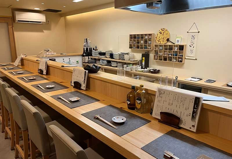 白木を基調とした清潔感あふれる店内が広がる「和彩酒菴しずく」では、季節の食材を活かした料理を楽しめます。新鮮な魚や旬の野菜を中心にした多彩な一品料理が揃う点が魅力で、「蓮根蒸しカニあんかけ」や「鴨ネギしょうゆ焼」などが味わえます。さらに、カニ鍋やしゃぶしゃぶといった季節感のある鍋料理も堪能できるラインアップも充実しています。店内にはカウンター席のほか、半個室席も備え、会食やデートなど幅広いシーンに対応できる空間が整っており、落ち着いた時間を過ごせます。
