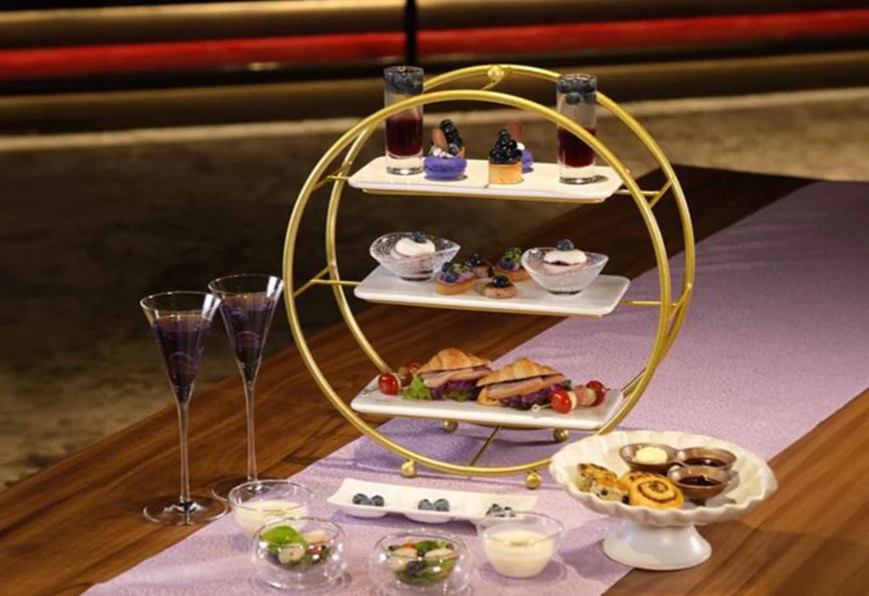 昼は季節ごとにテーマが変わるアフタヌーンティーを提供。「ブルーベリー×りんご」「ブルーベリー×チョコレート」など、ブルーベリーとコラボしたさまざまなスイーツが登場します。