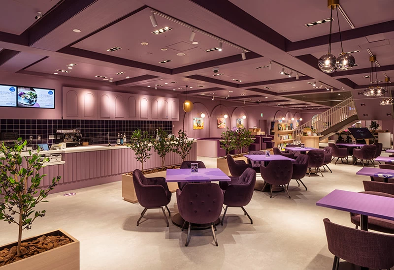 ブルーベリーでお馴染みの「わかさ生活」の施設内にある「WAKASA&Co. 京都四条店」は、ブルーベリーの世界観を満喫できるバーラウンジ。ジャズが流れる和の大人空間で、オリジナルブルーベリージンを使用したカクテルをお楽しみください。