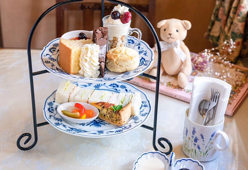 京都府亀岡市の山奥に佇む「英国村」内のカフェレストランでは、非日常の空間で本格的なアフタヌーンティーが楽しめます。アンティーク調で統一された店内と約150年前の英国を再現した空間が広がり、特別な時間を演出。数種類の紅茶とともに味わうアフタヌーンティーは、優雅なひとときを彩ります。さらに、庭で楽しめるピクニックスタイルのメニューも用意されており、開放的な時間を過ごせるのも魅力です。記念日向けの華やかなアフタヌーンティーセットも人気で、観光やドライブの合間に訪れたい一軒です。