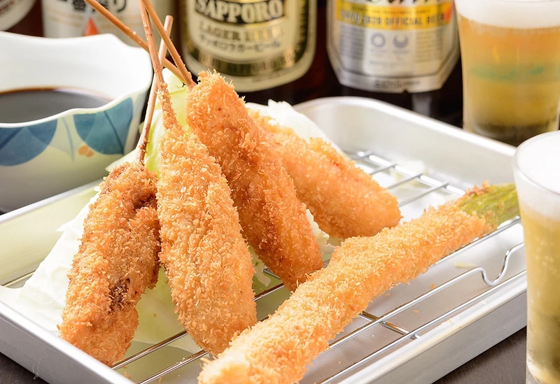 奈良県橿原市の「串かつ いど家」は、季節の食材を使った多彩な串かつを揚げたてで楽しめる大衆串かつ居酒屋です。素材の持ち味を活かした串かつは、子どもから大人まで食べやすく、家族みんなで味わえるのが魅力。ドリンクメニューにはビールや焼酎、日本酒など多彩なお酒もそろい、食事とともにゆったりとした時間を過ごせます。