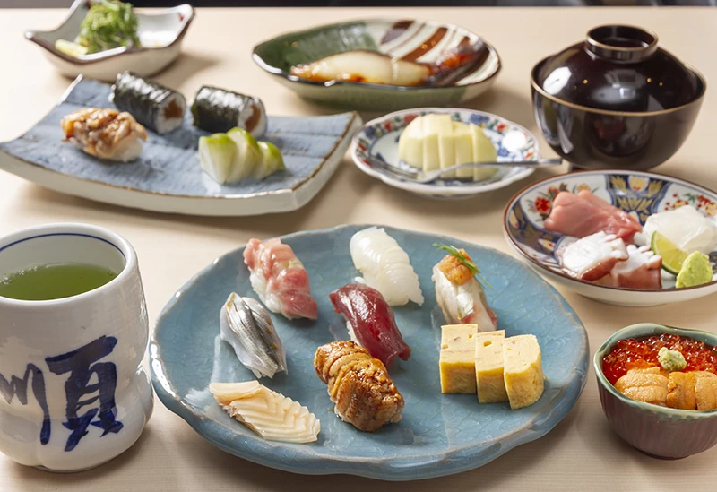 神戸三宮の中心地に佇む「鮨処 順」。1960年創業以来、受け継がれてきた“順グループ”の信念を守りながら、江戸前の技に淡路島や明石など地元漁場で水揚げされる旬の魚介を掛け合わせた握りが評判です。カウンター席では熟練の職人による所作を間近で眺められ、一貫ごとの繊細な味わいを堪能できます。スタイリッシュで高級感漂う店内には半個室も備わり、記念日や接待といった特別な日にも最適。季節の魚介を取り入れた「おまかせ握りコース」は、職人おすすめの8貫に加え、好みで選べる2貫が楽しめる人気の内容。訪れるたびに新しい旬の美味しさと出会える一軒です。