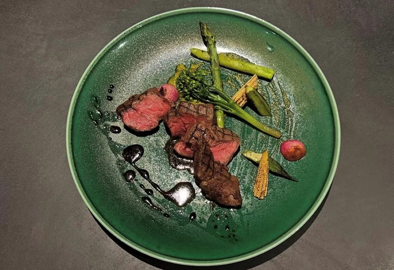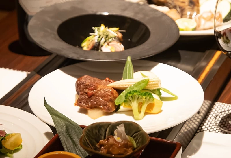 イタリア料理がベースの炭火ダイニングレストランとあって、炭火グリラーで約50分かけて焼く肉料理がイチオシ。なかでも、最高ランクの神戸牛を使った料理は絶品のひと言に尽きます。