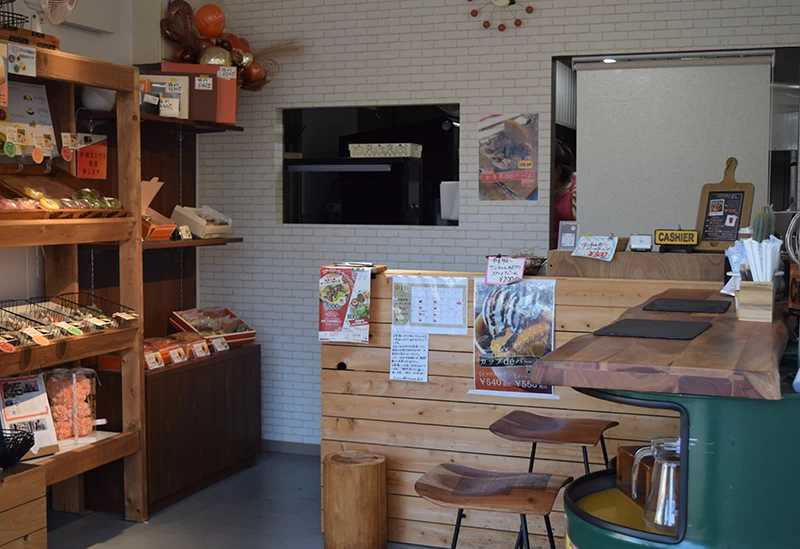 カフェの名物は、黒米入り玄米、豚汁、漬物と、好みの小鉢を3つ、その日の体調や気分に合わせて選べる「デリランチ」。デニッシュ生地で作った、もちもちサクサク食感の「クロワッサンドーナツ」をはじめとする、スイーツも人気です。ドリンクセットとしても、注文可能。