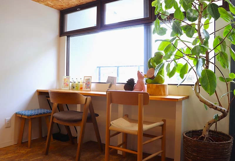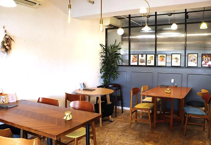 阪急・神戸三宮駅やJR三ノ宮駅より徒歩約6分の和カフェ。木のぬくもりを感じる店内には、ゆったりした小上がり席やテーブル席があり、窓際席は外の景色を眺めつつ、思い思いの時間を過ごせる開放的な空間になっています。