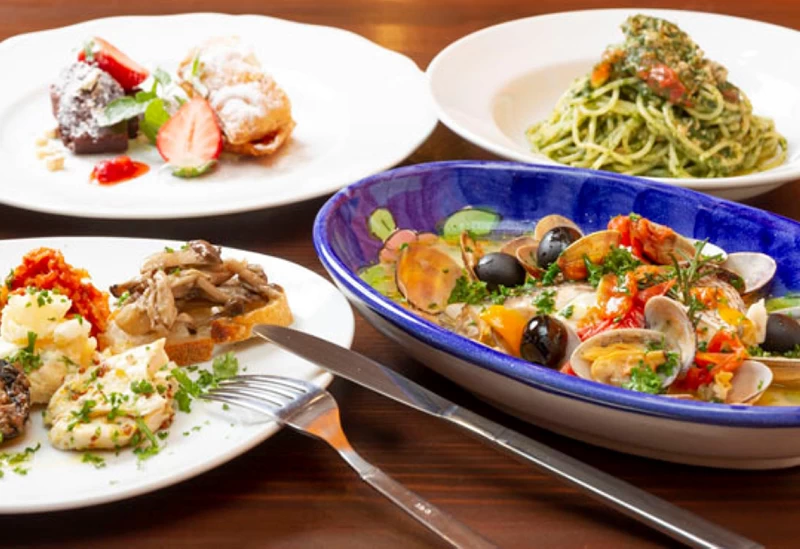 料理長の一押しメニューは、瀬戸内海産をはじめとする旬の鮮魚を使った「vivoのカルパッチョ盛り合わせ」。また、魚介を煮込むイタリア料理「アクアパッツァ」もおすすめです。昼は、安い価格で本格イタリアンを楽しみつつ、野菜もしっかり摂取できるパスタランチが人気です。