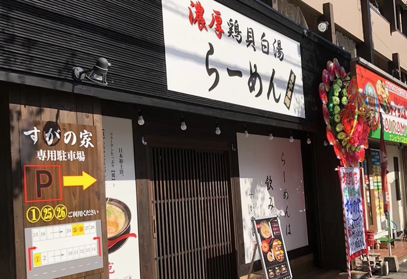 「鶏貝白湯らーめん すがの家」は、鶏と貝を合わせた白湯スープが自慢のラーメン店です。鶏と貝を使ったスープは日本ではめずらしく、コラーゲンたっぷりな鶏と旨味が凝縮された貝の味わいを堪能できます。スープは濃厚でありながらさっぱりとした後味が特徴で、女性からも人気。焼き飯や唐揚げなどのサイドメニューも豊富に揃い、とくに「ダンクライス」はスープに入れて味わうと、また違った美味しさを楽しめます。