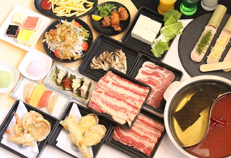 「しゃぶしゃぶ萬かい」は、しゃぶしゃぶや寿司を食べ放題で提供しているお店です。店内には掘りごたつ席の個室を完備し、小さいお子さん連れの家族もゆっくり食事が楽しめます。メニューは和牛のロースやカルビなどのお肉をはじめ、水餃子、ゴボウ、うどんといったさまざまな食材を、リーズナブルな食べ放題コースで味わえるのが特徴。薬味やタレの種類も数多く揃えているため、お好みの味付けを選んでしゃぶしゃぶを満喫しましょう。