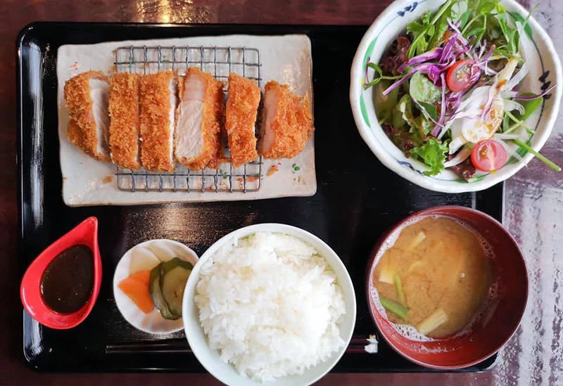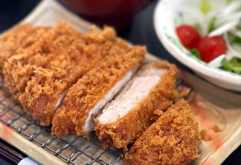 「とんかつ藍」は、やわらかい食感が特徴の地元ブランド豚を使用したとんかつを味わえるお店です。店長は長年とんかつの研究をし続けており、揚げる時間や食感にこだわっています。メニューはロースやヒレなどの部位を使ったとんかつを中心に、定食や丼を提供。とくに、厚切りのロースカツは食べごたえとボリュームがあり、人気の一品です。「とんかつ藍」はランチタイムのみの営業で、夜は創作料理を提供する居酒屋として営業しています。