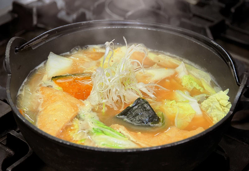 山梨県の観光スポット「山中湖」からすぐの「郷土料理庄ヤ」は、知る人ぞ知るほうとうの名店。数種類の小麦をミネラル豊富な富士山の伏流水で練り上げた自家製麺に、深いコクを生む味噌ダシが絶妙に絡み合います。また、石臼挽きのそばや馬刺し、冬季限定のわかさぎの天ぷらなど、旅気分を盛り上げる逸品も揃っています。ランチ・ディナーどちらも利用できるのがうれしいポイント。日本の最高峰・富士山をバックに、雰囲気抜群のお店は写真に残したくなること間違いなしです。