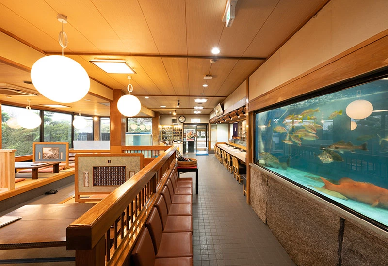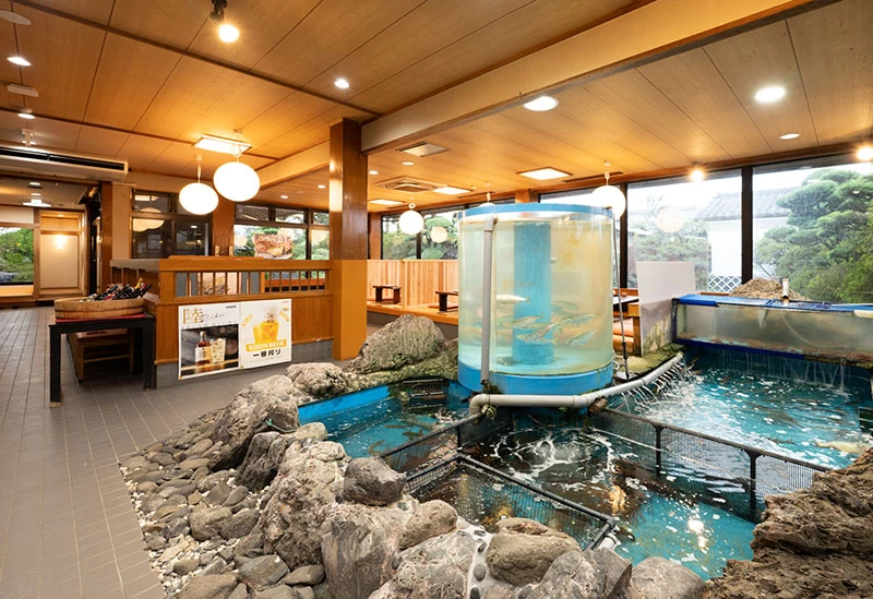 馬刺しや熊本県の南部を流れる球磨川で獲れたアユなど、地元産の食材を中心に使用したボリューム満点の和食を味わえるお店。店内には生簀(いけす)があり、いつ訪れても新鮮な料理を楽しめます。店主イチオシの「満足コース」は、熊本の海の幸を堪能するのにぴったりのコース。熊本の米焼酎などのアルコールと一緒にいただくのがおすすめです。片道60分まで無料で送迎してくれるサービスもあり、旅先での移動に困った際にも便利です。