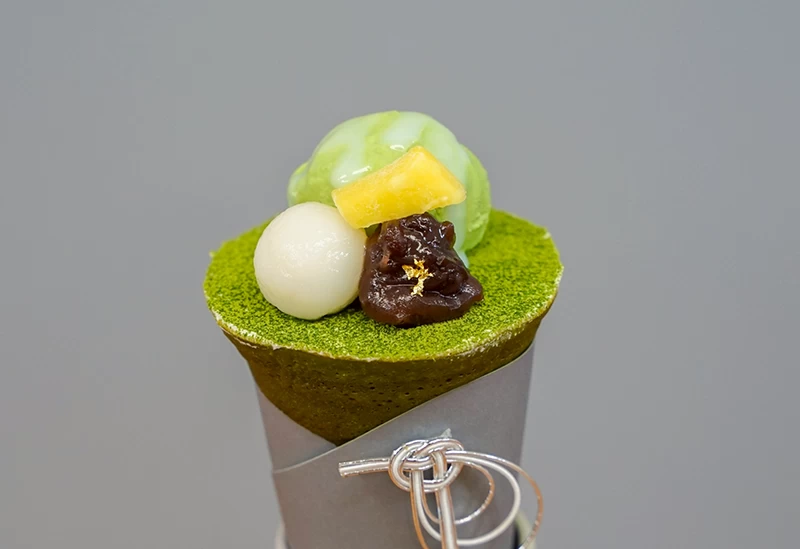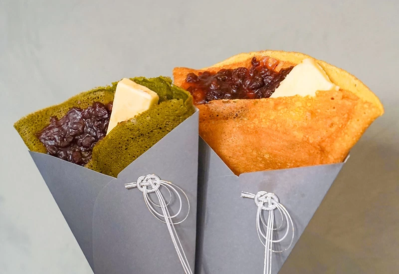 阪急京都河原町駅から徒歩約6分、和テイストのクレープ専門店「祇園茶屋たばねのし 新京極店」では、国際味覚コンクールで最高位3つ星を受賞した掛川抹茶を贅沢に使ったメニューが揃います。抹茶を練り込んだ生地となめらかなカスタードクリームを合わせたクレープや、掛川抹茶を使用したドリンクは、上質な抹茶の香りと味わいが楽しめます。「掛川抹茶ブリュレ」や「掛川抹茶ティラミス」のクレープには、金沢の老舗・吉井商店の金箔をトッピング。さらに「掛川抹茶ラテ」や「掛川抹茶ソフトクリーム」など、定番から季節限定まで豊富なラインナップが魅力です。テイクアウトして新京極商店街を散策しながら味わうのもおすすめ。