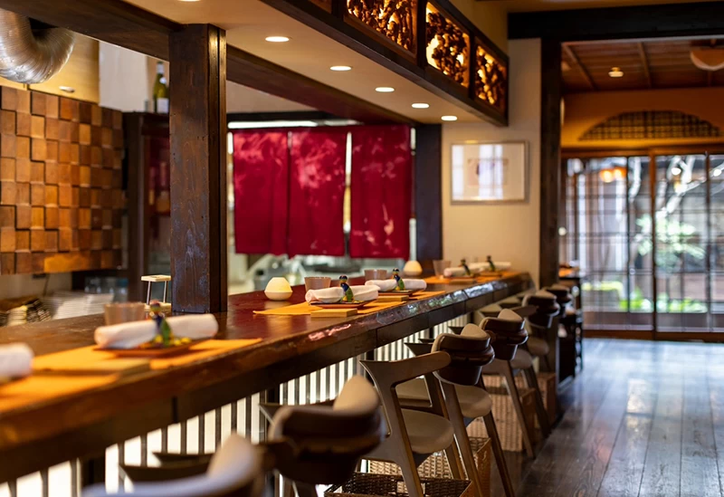 築100年を超える趣ある京町家を改装した「epice エピス」は、愛犬(小型犬)と一緒に本格フレンチを味わえる貴重なレストランです。美しい坪庭を望む情緒豊かな空間で、ゆったりとしたランチや特別なディナーのひとときを過ごせます。看板メニューの「野菜のテリーヌ」は、ソースを含め20種類以上の旬野菜を使用した芸術的な一皿。野菜本来の瑞々しい甘みと奥深い旨味が口いっぱいに広がります。和の心を感じる隠れ家で、愛犬とともに五感を満たす美食体験をご堪能ください。