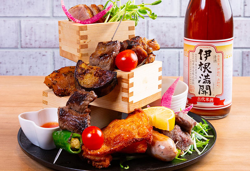 京都駅横の路地の奥にあり、串料理とお酒を夜ご飯に楽しめるお店。串料理には、肉だけでなく、季節の京野菜もふんだんに盛り込まれています。なかでもおすすめは、肉と野菜の黄金比を研究して組み合わせた「変わり串」。好きなものを少しずつ、いろいろと味わえるので、女性にも人気です。京町家風の隠れ家のような情緒ある空間の店内で、寛ぎながらゆったりと過ごしましょう。