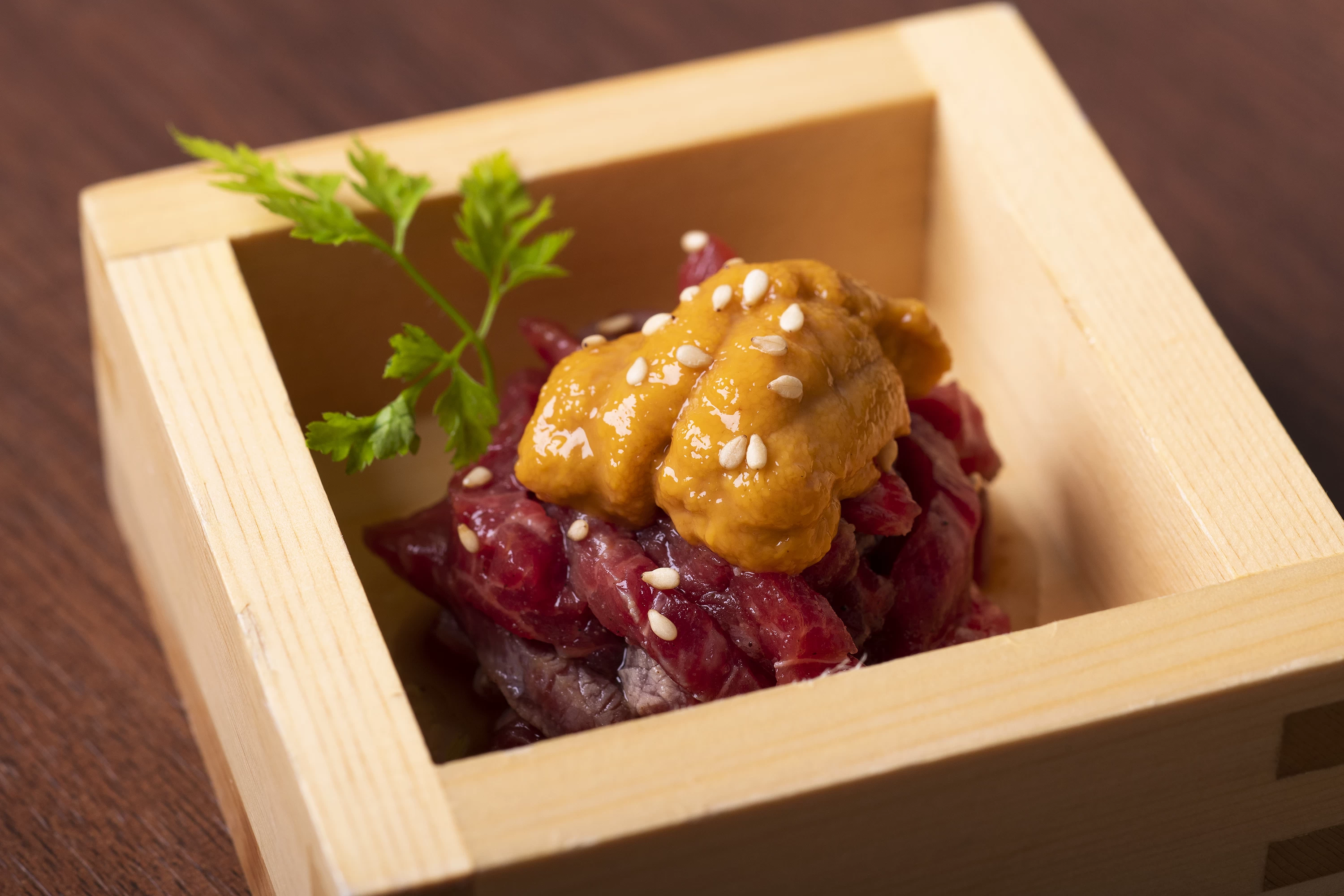 シックで落ち着いた店内は高級感があり、特別なシーンをより格上げしてくれる雰囲気が魅力です。和牛を1頭買いしているからこそ提供できる希少部位に加え、シャトーブリアンなどのメニューも取り揃えています。なかでも、「アニバーサリーコース」は、ウェルカムドリンクや前菜、希少部位の炙りなどが楽しめる充実の内容で、税込1万円以下というお手頃な価格。気軽に特別感を味わいたい方にぴったりです。