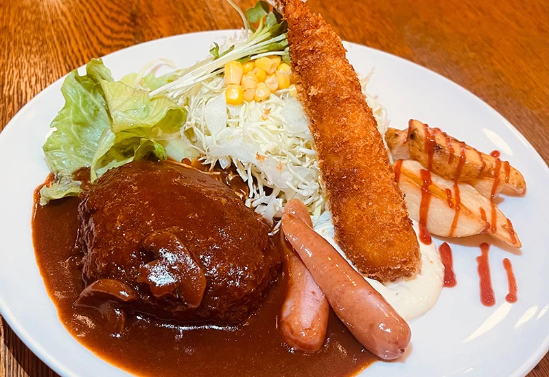 近鉄四日市駅から徒歩約3分のカフェレストラン。食事から夜カフェまで、シーンに合わせてさまざまな楽しみ方が選べるお店です。お店のイチオシ「自家製ハンバーグ」は、オリジナルソースと肉汁溢れるジューシーさが自慢の一品。セットメニューもあり、しっかり食べたいときにもおすすめです。