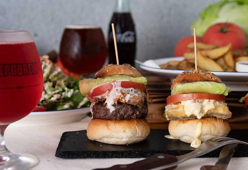 クラフトビールとスライダーバーガーが絶妙にマッチ
