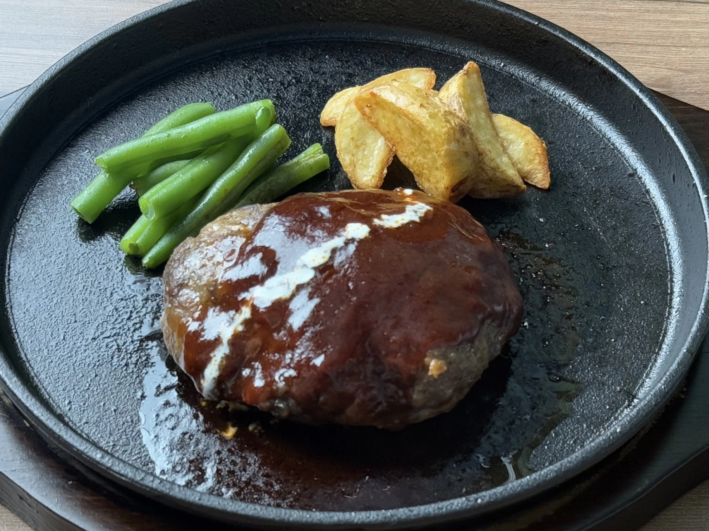 静岡県三島市の「スカイガーデン」内に店を構える「田中亭 三島スカイウォーク店」は、「田中亭 本店」の味を気軽に楽しめる2号店です。「ジューシーハンバーグ」や「ハンバーグとサイコロカットステーキ」が人気のコンボメニューとして支持されており、ボリュームと満足感を兼ね備えています。半解凍の状態でミンチにし、パン粉を付けて焼き上げる調理法により、肉汁を閉じ込めたジューシーな味わいを実現。本店と変わらない品質を保ちながら、席数が多く待ち時間が少ない点も魅力です。花に囲まれた落ち着いた店内で、ゆったりと食事が楽しめます。