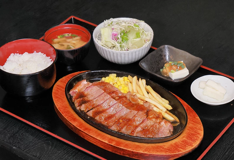 創業当初からリーズナブルで美味しいハンバーグにこだわる「田中亭 本店」は、地元で長く親しまれている一軒です。パン粉を付けてから焼くことで肉汁を閉じ込める独自の調理法により、ジューシーな味わいを実現しています。人気の「ハンバーグとサーロインステーキ」や「牛ヒレステーキ」などは、ごはんや味噌汁、サラダ、小鉢、漬物が付いた満足感のある内容です。半解凍の状態でミンチにするこだわりも美味しさの秘訣で、肉本来の旨味を引き出しています。駐車場も完備され、県外から訪れる人も多い人気店として知られています。