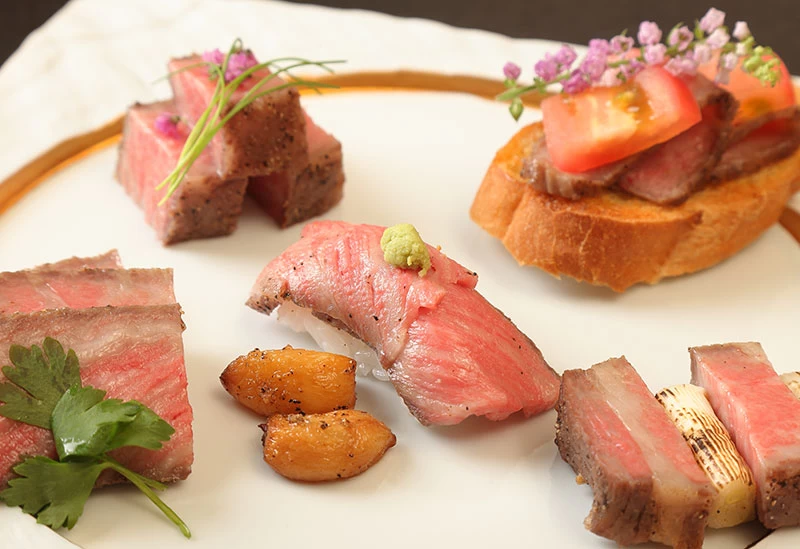 料理人であった叔父への憧れを原点に研鑽を重ねた大将が営む「寿司と天ぷら 竜之巣」では、旬の食材を活かした寿司と天ぷらが楽しめます。産地にとらわれず、その日の仕入れに応じて厳選したネタを使用し、熟成の加減と赤酢のシャリとの調和を大切にした寿司は、素材の旨味を引き立てる一貫です。天ぷらは素材ごとに衣や揚げ方を工夫し、軽やかで歯切れのよい食感に仕上げています。全国各地から選び抜かれた日本酒とのペアリングも魅力で、落ち着いた空間のなか、カウンター越しに職人の技を眺めながら至福の時間を過ごせます。