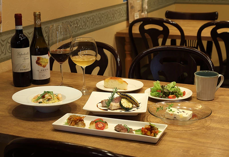 肩の力を抜いてフレンチやイタリアンを楽しめるカジュアルバルでは、創作性あふれる料理と心地よい音楽が調和する時間を過ごせます。木のぬくもりに包まれた店内は、テーブル席やベンチ席を備え、友人やパートナーとの食事にも最適。不定期で開催される生演奏が空間に彩りを添え、食事のひとときをより特別なものへと導きます。ランチからディナーまで多彩なメニューをそろえ、フレンチを気軽に楽しめるコースも充実。結婚式の二次会や音楽イベントにも対応し、さまざまなシーンに寄り添う一軒として親しまれています。