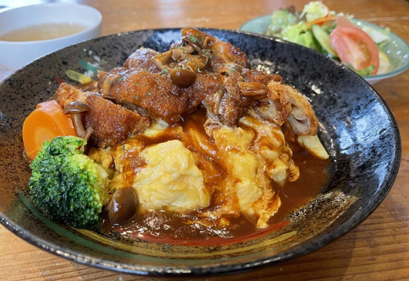 三島より南へ車で約1時間半。西伊豆エリアの閑静な住宅街に現れるカボチャの看板が目を引く洋食店。平日と土・日・祝日でメニューが変わるリーズナブルなランチに加え、ディナーではワイン蒸しやハーブ焼きなどのサイドメニューも楽しめます。人気料理の手造りハンバーグは昼夜ともに味わえて、和風と洋風から選べるのが魅力です。地元住民からも愛される家庭的な味をぜひ一度味わってみてはいかがでしょうか。