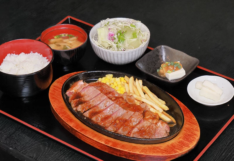 創業当初からリーズナブルで美味しいハンバーグにこだわる「田中亭 本店」は、地元で長く親しまれている一軒です。パン粉を付けてから焼くことで肉汁を閉じ込める独自の調理法により、ジューシーな味わいを実現しています。人気の「ハンバーグとサーロインステーキ」や「牛ヒレステーキ」などは、ごはんや味噌汁、サラダ、小鉢、漬物が付いた満足感のある内容です。半解凍の状態でミンチにするこだわりも美味しさの秘訣で、肉本来の旨味を引き出しています。駐車場も完備され、県外から訪れる人も多い人気店として知られています。