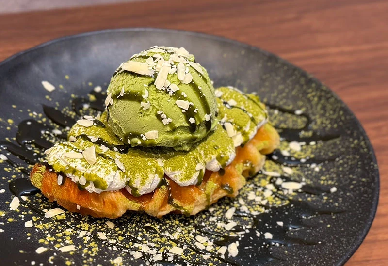 長崎電気軌道メディカルセンター停留場から徒歩約3分のクロワッサンサンド専門店では、8種類のクロワッサンサンドから好みのものを選べる「Milky Set(With Soup スープ付き)」や、ジュース付きの「Kids Plat」など、ボリューム満点のプレートメニューが楽しめます。サクサク食感に仕上げた自慢のクロワッサン生地を使った「クロッフル」に、スヤスヤ眠るくまちゃんプリン「添い寝くまちゃん」やジェラートをトッピングしたスイーツプレートも人気。季節限定のフルーツスイーツやパフェなど、写真に撮りたくなるキュートなメニューが豊富に揃い、見た目も味も楽しめる、子どもから大人まで満足できるお店です。
