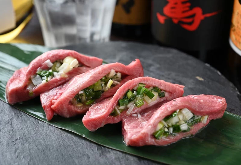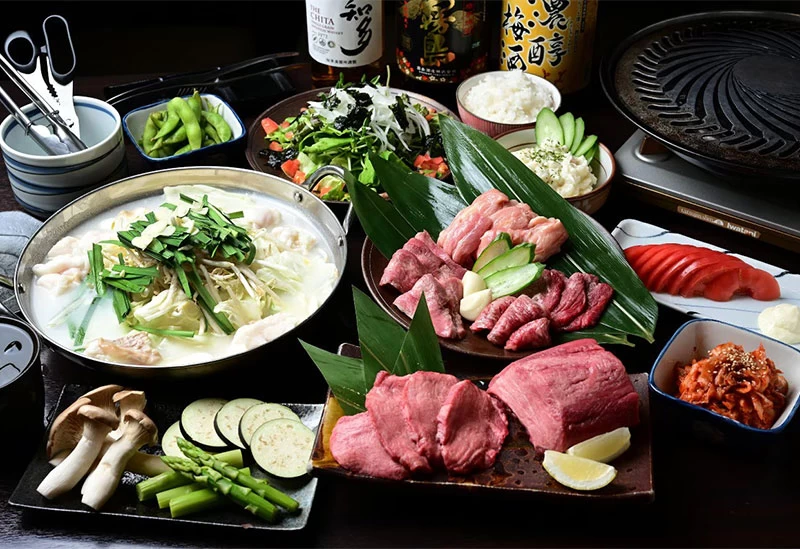 鮮度抜群の厚切り牛タンや国産牛を使ったもつ鍋が名物の「藤嶋や」。サクッと歯切れよく旨味が広がる「厚切り牛タン」、特製ネギダレを詰めた「厚切り葱塩タン」などさまざまな牛タンメニューが揃い、丁寧に仕込んだ特製スープが自慢の国産牛のもつ鍋と、お肉をしっかりといただきたいときにぴったりのお店です。食べ放題・飲み放題ができるコースも充実し、「100分食べ飲み放題」では厳選肉の盛り合わせを心ゆくまで堪能できます。平日、土曜日は午前4時まで営業しているので、深夜の宴会にも使いやすい一軒です。