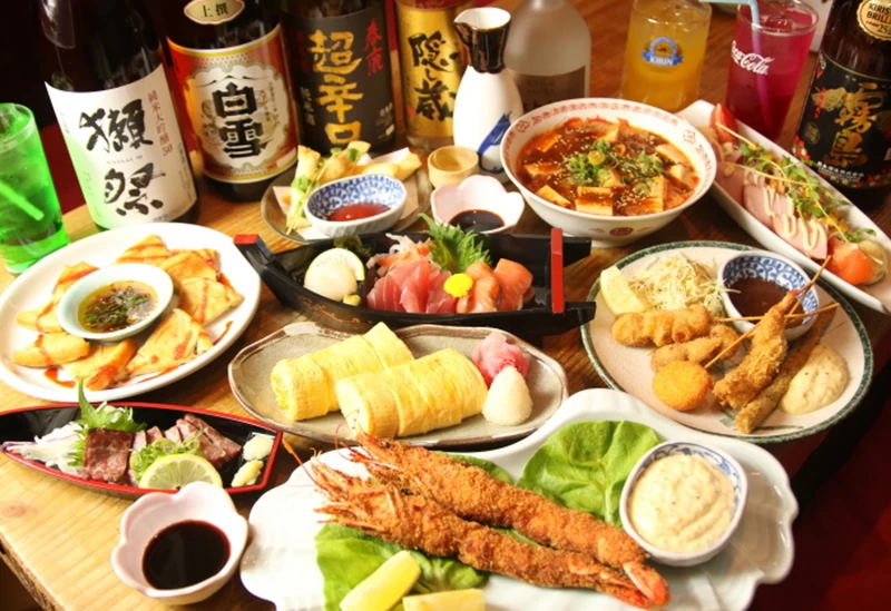近畿日本鉄道・大和八木駅から徒歩約2分という好立地に佇む大衆居酒屋。木のぬくもりあふれる広々とした店内には、昭和レトロポスターが飾られ、ノスタルジックな雰囲気を醸し出しています。長年の経験を積んだ料理長が手がけるメニューは、和・洋・中・韓の豊富な料理にアレンジを加えた創作料理がコースやアラカルトで楽しめるほか、酒の肴にぴったりな一品料理や、〆にうれしいラーメン・ご飯ものまで幅広く揃います。親会社が酒販店ということもあり、地元・奈良県の蔵元から仕入れた地酒をはじめ、全国各地の銘酒や焼酎も豊富にラインナップ。ドリンクメニューも充実しており、飲み放題のラストオーダーが15分前というのも嬉しいポイントです。カウンター席や、レイアウト変更が自在にできるテーブル席、さらに宴会にも最適な座敷席も備え、多様なシーンに対応しています。