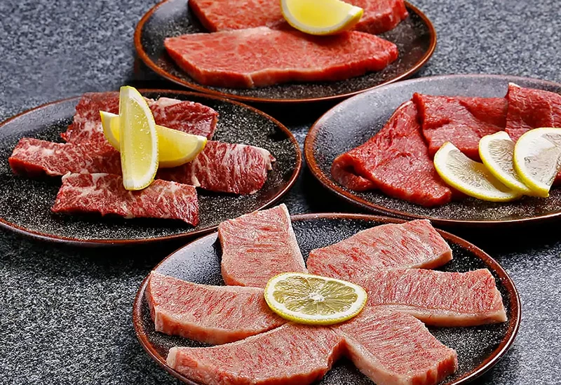 ディナーコースのほか、気軽に名物を楽しめるランチもおすすめ。ロースやあぶり寿司などたくさんの種類を少しずつ盛り込んだ「姫しゃぶ御膳」をはじめ「鉄板焼きステーキランチ」「寿き重」「ステーキ重」「焼肉定食」などを用意しています。
