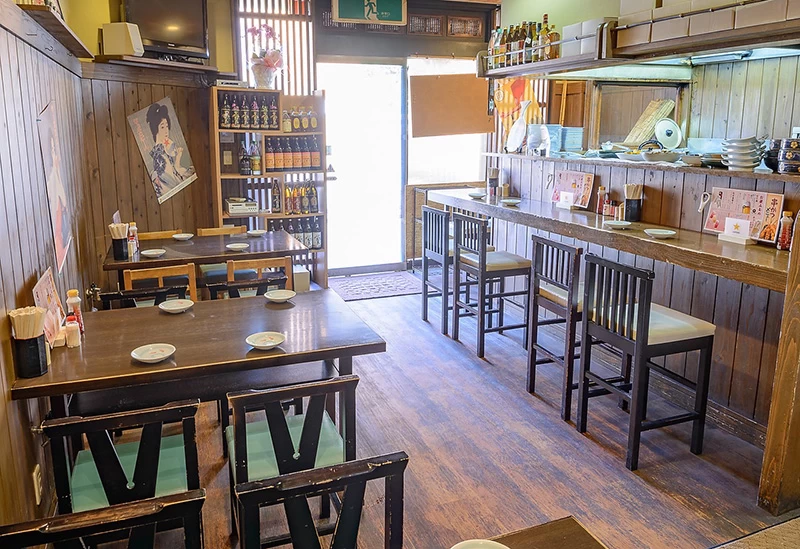 近鉄桜井駅から徒歩約6分の「田舎酒茶屋きらく」は、創業30年以上の歴史を誇る居酒屋。酒販店内にあり、昭和の大衆居酒屋を思わせる懐かしい雰囲気が魅力です。刺身や焼き魚などの海鮮から、焼き鳥や「どて焼」といった肉料理、「だし巻き」などの定番、日替わりのおすすめ料理まで、お酒に合う多彩なメニューが揃います。手頃な価格の定食やうどんが楽しめるランチも人気です。奈良県産を中心に、日本各地の地酒やビール、焼酎、サワー、ウイスキーなど種類豊富な酒類を取り揃え、珍しい地酒にも出会えます。スタッフにおすすめを聞きながら、肴と共に味わうのがおすすめです。ショーケースに並ぶ酒瓶が雰囲気を引き立てる店内は、カウンターやテーブル席が程よく配置されており、一人様から家族連れ、カップルまで気軽に利用できる温かな空間です。