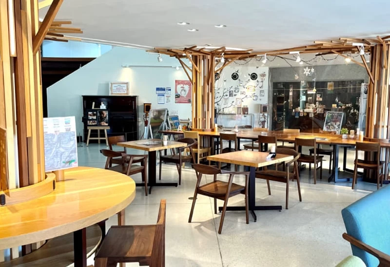 新居浜駅前にある「あかがねミュージアム」は、美術館や多目的ホール、「新居浜太鼓まつり」で使用される太鼓の展示などを行う多目的文化施設です。この館内にあるカフェが「RED COPPER COFFEE」。駅から近くアクセスも良いため、観光の合間のランチやひと休みにぴったりです。店内は落ち着いた雰囲気で、ゆったりとした時間を過ごせます。