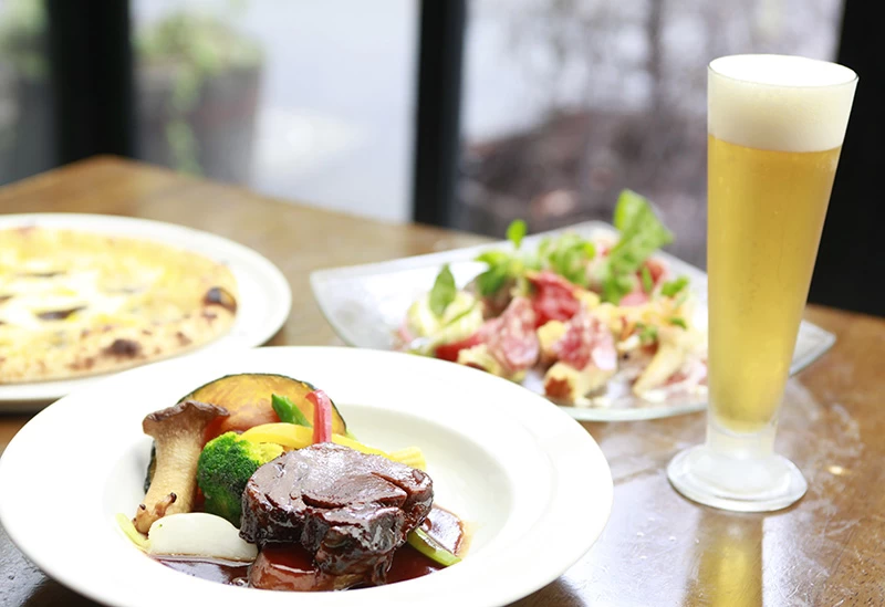 東京都福生市にある酒蔵直営のレストランは、1863年創業の伝統を受け継ぐ蔵元が手がける一軒です。パスタやピッツア、肉料理、魚料理など幅広いメニューがそろう開放的な空間で、ゆったりと食事を楽しめます。なかでも、福生産ソーセージの盛り合わせはビールと相性が良く、訪れた際に味わいたい一皿です。さらに、「TOKYO BLUES」や「多摩の恵」、地酒「多満自慢」など蔵元の酒とともに味わえる点も魅力で、敷地内には史料館や直売店も併設されており、食事とあわせて楽しめます。