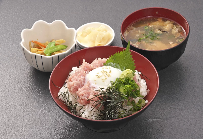沼津港の潮さい市場入り口横にある「魚河岸 丸天 みなと店」は、常に観光客や地元の人でにぎわう、活気あふれる海鮮料理店。新鮮な魚介類を使った豪快な料理が自慢で、駿河湾で獲れた魚介類を毎朝社長自らが厳選しています。イチオシは、丼いっぱいに盛り付けられたボリュームたっぷりの「にこにこ丼」。その日の新鮮な魚介類を存分にいただきましょう。またオリジナルメニュー「まぐろのフルテールシチュー」もおすすめ。マグロの珍しい尾の付け根部分をじっくり煮込み、濃厚な味わいとトロトロ食感が味わえる絶品です。店内の窓からは沼津港を一望でき、開放感あふれる空間で食事を楽しむことができます。