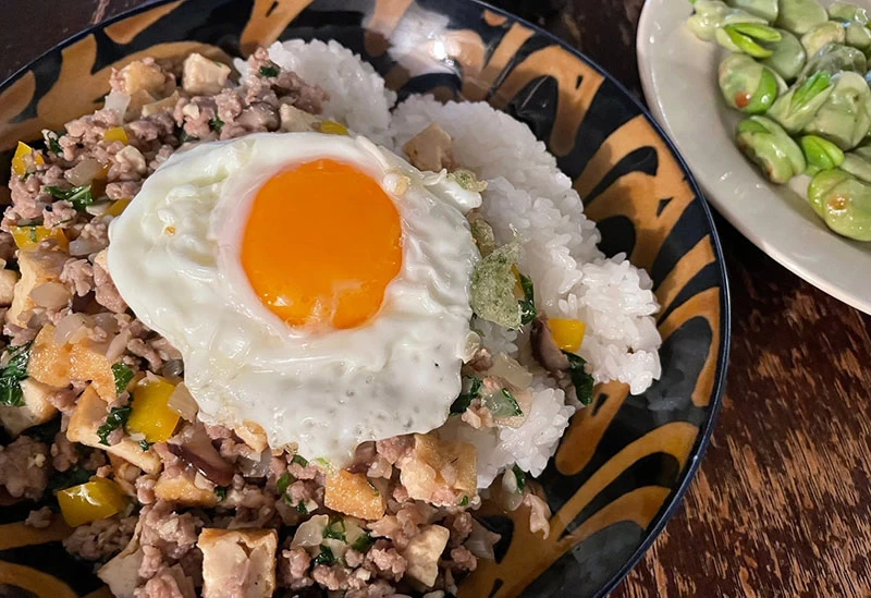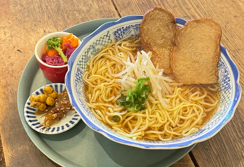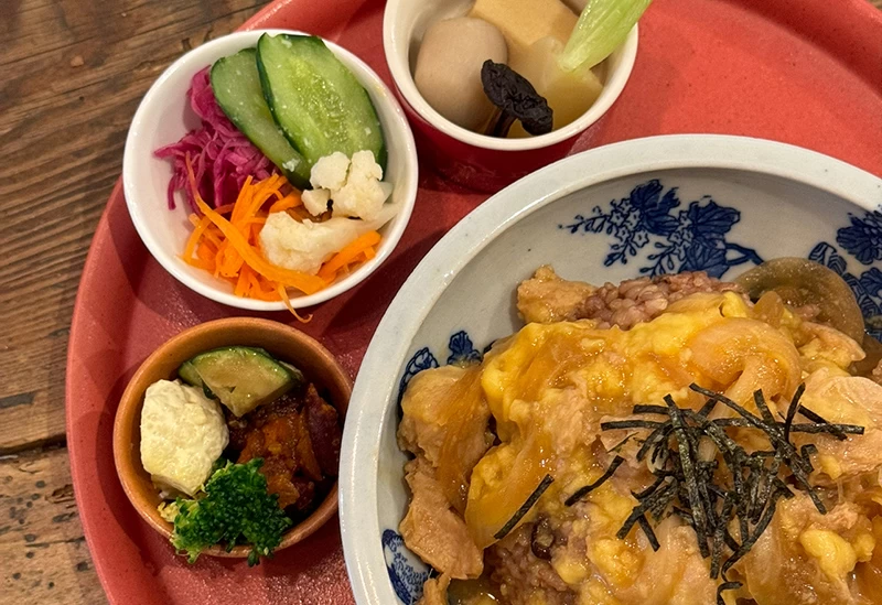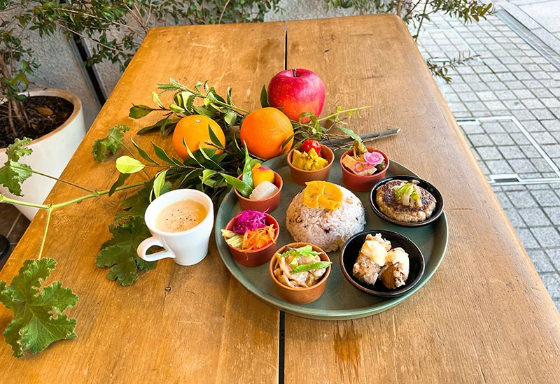 木のぬくもりあふれる空間で、エビフライやハンバーグなどトッピング自由のランチプレートを楽しむことができるカフェ。ほかにも、ふわふわの玉子がうれしい懐かしさを感じるオムライスや、おにぎりランチなどのメニューが。窓から差し込む光や店内を流れる音楽が心地よく、いつもと違った趣で食事をいただきたいときの目的地としてぴったりです。